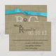 Le look imprimé de burlap avec un arc bleu imprimé. Carte de réponse pour répondre à nos invitations de mariage "burlap and bow". Modifiez le texte au besoin et déplacez l'arc comme préféré ou supprimez si non désiré.
