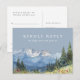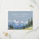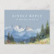 Une élégante carte de réponse RSVP de montagne de fleurs sauvages aquarelle bleu poussiéreux avec une typographie chic. Le verso présente vos coordonnées et une demande de chanson d'invité amusante. Conçue par Thisisnotme