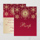 Cette carte de réponse à motif (imprimé) de flocons de neige scintillants rouge et or moderne et festive correspond à l'invitation de mariage présentée ci-dessous. Elle est présentée ici sur du papier de base. Elle est facilement personnalisable avec vos propres informations. ***Soyez prudent si vous changez le type de papier. Le papier métallisé or est très foncé et ne donnera pas de bons résultats. Tout le texte est personnalisable, ainsi que le choix du papier. Si vous avez besoin d'autres éléments pour rendre votre événement encore plus spécial, tels que des cartes de numéro de table, des étiquettes ou autocollants de faveur, des timbres-poste, des enveloppes ou des cartes de placement, etc., veuillez envoyer votre demande à niteowlstudio@gmail.com.
