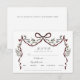 Cette charmante carte de réponse RSVP présente un nœud floral rustique et une illustration de délicates ailes, parfaite pour un mariage fantaisiste. Le design comprend un espace pour que les invités indiquent leur choix de repas (bœuf, poulet, poisson, végétarien, végan) et ajoutent d'éventuelles allergies ou exigences particulières au verso. Les phrases "Accepte avec plaisir" et "Regrette de décliner" sont imprimées de manière élégante, guidant les réponses de vos invités. Elle est conçue pour compléter un thème de mariage naturel, vintage ou bohème, ajoutant une touche personnelle à votre jour spécial. Assurez-vous que les besoins de tous vos invités soient satisfaits grâce à cette carte de réponse soigneusement conçue, rendant l'organisation de votre mariage fluide et magnifique. Veuillez répondre avant le 1er août pour finaliser le nombre d'invités