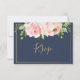 Conçue pour se coordonner avec notre collection de mariage Bloomsbury, cette carte de réponse de mariage chic présente une belle composition florale rose à l'aquarelle et un lettrage manuscrit au pinceau. Personnalisez-la facilement et rapidement avec vos détails, il suffit d'appuyer sur le bouton personnaliser pour réorganiser et formater le style et l'emplacement du texte. (c) The Happy Cat Studio