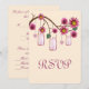 Carte de réponse aux fleurs roses en pot Mason
