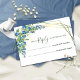 Carte de réponse avec cadre en feuille d'or fausse et myrtille. Le style romantique avec des myrtilles et des fleurs sauvages bleues est parfait pour un mariage rustique d'été. Le cadre géométrique en feuille d'or fausse ajoute une touche moderne. Les éclaboussures d'aquarelle complètent la composition et lui donnent un charme spécial.