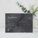 Obtenez une réponse céleste de vos invités avec notre carte de réponse RSVP de la collection Ciel étoilé Phases de lune Zodiaque. Cette carte exquise présente un design noir et blanc captivant qui imite la beauté d'un ciel étoilé, donnant le ton à une célébration inspirée du ciel. Le design minimaliste mais élégant est parfait pour les couples qui sont attirés par la beauté céleste, l'astrologie ou l'attrait mystique du ciel nocturne.