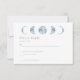 Complétez votre suite de mariage céleste avec notre carte de réponse de mariage de la collection Bleu céleste Phases de lune minimaliste. Ce design présente une esthétique simple, minimaliste et nette, avec un fond blanc qui permet aux éléments célestes de ressortir. Centrées en haut de la carte, les cinq phases de la lune sont représentées dans une belle couleur bleu clair, ajoutant une touche de beauté céleste au design.