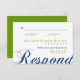 Elégante calligraphie bleu marine se distingue et est complété par Lime Green - moderne et tendance. Customisez le style et la couleur du papier ainsi que les polices et les couleurs d'information sur les mariées, les mariés et les cérémonies. Montré ci-dessous sur Basic ainsi que Champagne