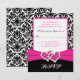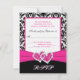 Carte de réponse Damask noir, blanc, rose et cœurs
