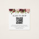 Carte d'invitation de mariage moderne avec un design floral aquarelle rustique burgundy et blush, et un code QR qui dirige vos invités vers votre site web de mariage où ils pourront répondre en ligne. Le verso de cette carte carrée comporte une photo que vous pouvez supprimer ou remplacer par la vôtre.