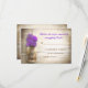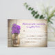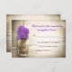 Belle carte de réponse de mariage rustique - cartes de réponse de mariage avec fond en bois en détresse et pot Mason avec des fleurs de couleur violette. Je suggère un beau papier à texture de lin pour ce design.