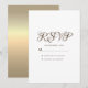 Carte de réponse de mariage simple, minimale, à typographie pure et blanche, avec un dos métallisé brillant moderne et ombré or.