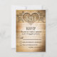 Thèmes de mariage country ou western originaux et modernes avec carte de réponse avec une gravure de cœur en bois et une typographie élégante.