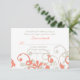 La couleur du texte et du fond de cette carte de réponse de mariage (rsvp) sur fond corail, beige ou blanc est entièrement personnalisable. Pour modifier le texte, utilisez l'option de personnalisation. Pour des changements plus importants sur la carte, notamment des changements de police, de couleur de police, de couleur de fond ou d'emplacement du texte, utilisez l'option de personnalisation. C'est une carte de réponse élégante et charmante pour un mariage printanier ou estival. Bien que actuellement personnalisée pour un mariage, cette carte de réponse conviendrait également pour d'autres occasions spéciales. Cette carte est actuellement configurée pour être imprimée sur du papier blanc uni, mais elle est également très jolie sur du papier métallisé blanc glacé ou du papier lin. Vous pouvez également modifier le texte de cette carte pour en faire une carte d'indications, de réception, de site web de mariage et/ou d'hébergement.