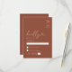 Créez une esthétique moderne sans effort pour votre jour spécial avec notre carte de réponse de mariage minimaliste en terre cuite. Avec vos initiales personnalisées dans le coin supérieur gauche, cette carte de réponse sophistiquée évoque un charme intemporel et élégant qui fera de votre mariage un jour inoubliable. Avec un design épuré et net d'orange brûlée, cette carte de réponse classique ajoutera une touche d'élégance moderne à votre jour spécial.