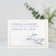 Une carte de réponse de mariage traditionnelle et élégante avec écriture calligraphique navy et blanc avec bordure dorée (CE N'EST PAS DU FOIL).