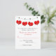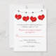Cette carte de réponse de mariage noire et blanche amusante et mignonne comporte quatre cœurs rouges alignés sur le haut de l'invitation comme des banderoles, avec les lettres RSVP dessus. Elle correspond à l'invitation de mariage présentée ci-dessous.