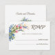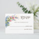 Carte de réponse de mariage rustique aux fleurs sauvages et myrtilles. Style romantique avec des myrtilles, des fleurs de lavande, du trèfle et de l'eucalyptus, parfait pour un mariage rustique d'été. La base de la composition est une couronne de fleurs sauvages et un cercle en bois. Les éclaboussures d'aquarelle complètent la composition de fleurs et de baies et lui donnent un charme spécial.
