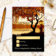 Carte de réponse élégante avec un arbre automnal coloré et une lanterne festive surplombant un lac romantique. Le devant comporte une image de fond de texte séparée pour faciliter l'écriture de vos invités. Vous pouvez faire glisser ou supprimer cette image selon vos besoins.