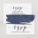Cette carte de réponse RSVP de site web de mariage à l'aquarelle bleu marine et or est parfaite pour un mariage élégant. Ce design abstrait de nuit étoilée présente un pinceau dramatique d'aquarelle bleu marine surligné de magnifiques paillettes dorées fausses. Personnalisez la carte de réponse en ligne avec la date limite de réponse RSVP et l'adresse du site web de mariage. Si vos invités n'ont pas besoin de mot de passe de site web, vous pouvez remplacer le texte par un message court et doux pour vos invités ou une méthode alternative de réponse RSVP.