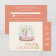 L'élégante carte d'accueil de mariage comporte une jolie fontaine et des colombes sur le devant avec des accents coralliens. Le dos porte toutes vos données dans une police simple et élégante et est super facile à mettre à jour en utilisant le modèle.