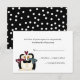 Jolie carte RSVP de la réponse de mariage d'hiver faite en blanc, avec d'adorables images de pays d'un couple de pingouins, dans le coin inférieur gauche. Customisez le texte en fonction de vos besoins. Super avec nos produits de mariage d'hiver pingouin assortis.