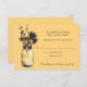 Parfait pour un mariage champêtre ou peut-être que vous aimez simplement les pots Mason ! Ancien pot Mason suspendu à un crochet avec des fleurs sauvages champêtres. Un merveilleux fond de couleur jaune avec un dessin noir d'un pot Mason rempli de fleurs sauvages champêtres. Si vous avez des questions sur ce design ou si vous souhaitez une modification de couleur, veuillez m'envoyer un e-mail à paula@labellarue.com. Vérifiez également les Cartes d'INVITATION DE MARIAGE PRINCIPALE, de RÉCEPTION et de PLACEMENT des invités pour assortir ! Cette carte de réponse de 3,5x5 est configurée comme une carte postale. Il suffit d'ajouter votre adresse de retour au verso.