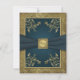 Cette carte de réponse florale bleu sarcelle foncé et or avec un ruban imprimé et un médaillon à l'aspect faux gravé correspond à l'invitation de mariage présentée ci-dessous. Tout le texte est personnalisable, tout comme le choix du papier. Si vous avez besoin d'autres éléments assortis dans le même design, veuillez envoyer votre demande par courriel à niteowlstudio@gmail.com.