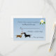 Chiens mignons réponse mariage carte RSVP fait en bleu, avec des graphiques en silhouette adorable d'un brun et un dachshund noir baiser, dans le coin inférieur gauche et une simple marguerite blanche dans le coin supérieur droit. Customisez le texte curly amusant pour répondre à vos besoins.