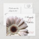Personnalisez cette élégante carte postale avec gerbera blanc avec votre propre texte. Fait une excellente carte de réponse pour aller avec nos invitations et économiser sur les frais de port en même temps.