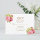 De magnifiques pivoines et des hydrangées gracient cette belle carte de réponse pour votre mariage ou célébration spéciale. Le RSVP énumère une réponse aimable avec la date, l'acceptation, le déclin et le nombre de participants. Un menu de plats principaux est également proposé. OEuvre originale et design en aquarelle par Audrey Ascenzo ❤️ ©Audrey Ascenzo