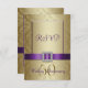 Célébrez votre anniversaire de mariage avec style avec ces élégantes invitations de 50e anniversaire de mariage à effet doré, pour lesquelles il s'agit de la carte de réponse. Ces invitations élégantes sont un merveilleux mélange de traditionnel et de moderne. Les graphismes informatiques donnent à cette carte un aspect 3D, même si le ruban de satin violet, le broche en or et diamant et le numéro 50 en métal doré ne sont que des images photo imprimées sur la carte plate. Veuillez commander sur du papier blanc uni comme indiqué, pour laisser tous les détails de la conception ressortir. Au verso, ajoutez votre texte de réponse pour la fête de votre 50e anniversaire. Cette carte NE contient AUCUN embellissement. Tout ce que vous voyez est imprimé sur une surface de carte plate. Souhaitez-vous une couleur de ruban différente ou de l'aide pour la conception de votre invitation ? Veuillez