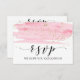 Cette carte de réponse RSVP à motif blush rose aquarelle et demande de chanson dorée est parfaite pour un mariage au thème romantique et doux moderne. Le design féminin luxueux présente une texture rose clair à l'aquarelle avec une touche de poussière de faux paillettes dorées et une police d'écriture calligraphique élégante. Créez votre liste d'invités de mariage et votre liste de chansons de piste de danse en même temps ! Cette carte de réponse de mariage demande commodément aux invités s'ils pourront assister à votre mariage, et quelle chanson les fera danser.