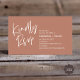Voici notre carte de réponse de mariage Modern Elegance – le mélange parfait de sophistication et de simplicité. Conçue pour le couple contemporain, cette carte de réponse présente un script propre et minimaliste, et une touche subtile de terracotta rustique marron terreux pour confirmer la présence de leurs invités. Le design élégant complète le thème de mariage rose poussiéreux, ajoutant une touche de classe à votre suite de papeterie. Assurez-vous que votre jour spécial soit méticuleusement planifié avec notre carte de réponse élégamment moderne – un souvenir intemporel pour vous et vos invités. Conçue par TeeshaDerrick