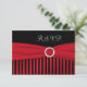 Cette carte de réponse RSVP rayée noire et rouge comporte un ruban rouge IMPRIMÉ avec une broche à bijou en cristal FAUX qui correspond à l'invitation de mariage présentée ci-dessous. Si vous avez besoin d'autres articles assortis, veuillez envoyer votre demande par courriel à niteowlstudio@gmail.com.