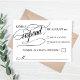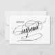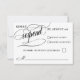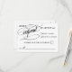 La carte de réponse RSVP à l'écriture calligraphique Chic Élégant est la carte RSVP simple moderne parfaite. Peut être noir et blanc ou vous pouvez changer le fond en une couleur personnalisée qui complétera le texte noir.