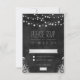 Chaîne de lumière Chalkboard © Sunny Mars Designs. Design élégant, moderne, élégant, classe, tendance, chic personnalisable formel ou mignon décontracté mariage RSVP réponse ou cartes de réponse avec une belle conception de tableau noir avec des ampoules de corde ou de lampes à cordes accrochées au-dessus avec un design tropical floral ci-dessous.