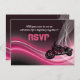 Carte de réponse RSVP pour le mariage des motocyclistes roses, avec une motocyclette sur un abstrait dégradé rose, blanc, arrière - plan de prune et un maillage blanc. Certains éléments sont offerts par Clipartandfonts.com.
