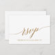 Cette élégante carte de réponse à une demande de chanson en calligraphie dorée est parfaite pour un mariage simple. Le design neutre présente une carte minimaliste ornée d'une typographie romantique et fantaisiste en faux feuilletis doré. Créez votre liste d'invités de mariage et votre liste de chansons de piste de danse en une seule fois ! Cette carte de réponse de mariage demande commodément aux invités s'ils pourront assister à votre mariage, et quelle chanson les fera danser.