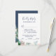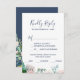 Cette carte de réponse RSVP pour le choix du menu de fleurs de pivoine romantiques bleues est parfaite pour un mariage élégant. Le design floral présente des fleurs aquarelles en cascade rose pâle, pêche et blanches sur un fond bleu marine. Cette carte de réponse de mariage demande commodément aux invités quel repas ils aimeraient à votre réception.