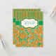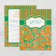 Cette carte de réponse damassée florale orange, verte et blanche avec des rayures correspond à l'invitation de mariage présentée ci-dessous. Si vous avez besoin d'articles assortis dans ce design, veuillez envoyer votre demande par courriel à niteowlstudio@gmail.com.