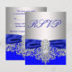 Belle carte de réponse royale bleu et argent RSVP. Vous pouvez facilement customiser cette fête de 16 ans, mariage ou autre RSVP d'un bleu royal orné et élégant en ajoutant simplement les détails de votre événement à l'avant et à l'arrière dans le style de police et la couleur, le libellé et la disposition de votre choix.