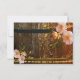 Cartes de réponse RSVP sur le thème romantique du vin avec des raisins et des roses de pêcher sur fond de tonneau de vin avec des guirlandes lumineuses festives. Cette carte de réponse comporte un modèle de code QR facile à personnaliser. Fait partie d'une collection de mariage et peut également être utilisé pour d'autres célébrations sur le thème du vin.