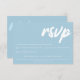 C'est une carte de réponse de mariage moderne bleu doux avec un modèle de choix de repas, qui sera parfait pour tout mariage. Cette carte de réponse est recto-verso et comporte des monogrammes et un site web de mariage (facultatif) au verso. Tout le texte est modifiable, il suffit de cliquer sur 'Personnaliser ce modèle'. Vous pouvez également changer la couleur de fond, il suffit de cliquer sur "Personnaliser davantage".