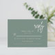 Notre carte de réponse personnalisée comporte une écriture script simple dans des couleurs modernes pour un ajout minimal et beau à votre suite d'invitation de mariage. Cet article fait partie de notre suite de mariage Hunter H100, veuillez consulter notre magasin pour des produits assortis.