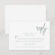 Notre carte de réponse personnalisée comporte une écriture simple et moderne dans des couleurs actuelles pour un ajout minimal et élégant à votre suite d'invitation de mariage. Cet article fait partie de notre suite de mariage Hunter H100, veuillez consulter notre magasin pour des produits assortis.