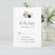 Cette carte de réponse simple romance florale est parfaite pour un mariage élégant. Le design bohème rustique moderne présente des fleurs romantiques à l'aquarelle dans des tons doux de bordeaux, mauve, rose blush et blanc crème avec des feuilles vertes.