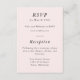 Cartes de réponse simple rose blush pour le printemps. Si les invités répondent en ligne, personnalisez cette carte pour aller avec la suite d'invitation. Toutes les zones de texte sont personnalisables. Remplacez le titre « Réception » par des informations sur « Hébergement, tenue vestimentaire, stationnement ou transport ». Associez-la à d'autres éléments de la collection pour une invitation et un rassemblement cohérents.