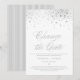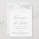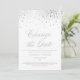 Changez la date ! Annoncez à votre famille et à vos amis le report de votre mariage avec cette élégante carte d'annonce. Elle présente des points de confettis en feuille d'argent faux avec un motif rayé. Personnalisez en ajoutant vos noms et d'autres détails. Cette carte de report de mariage en feuille d'argent sera également parfaite comme annonce d'élopement.