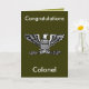 This greeting card is decorated with the Army Colonel collar device and the words "Congratulations Colonel." Inside the words "On your retirement from the world's greatest Army" appear. Un grand poison.