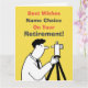 Une carte de retraite amusante que vous pouvez personnaliser avec le nom du destinataire. Carte de retraite pour un arpenteur.