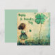 Une carte de Saint-Patrick douce représentant une jeune fille regardant un trèfle à quatre feuilles. Le recto dit : Joyeuse Saint-Patrick. Le verso dit : À vous. C'est une carte plate, recto-verso.